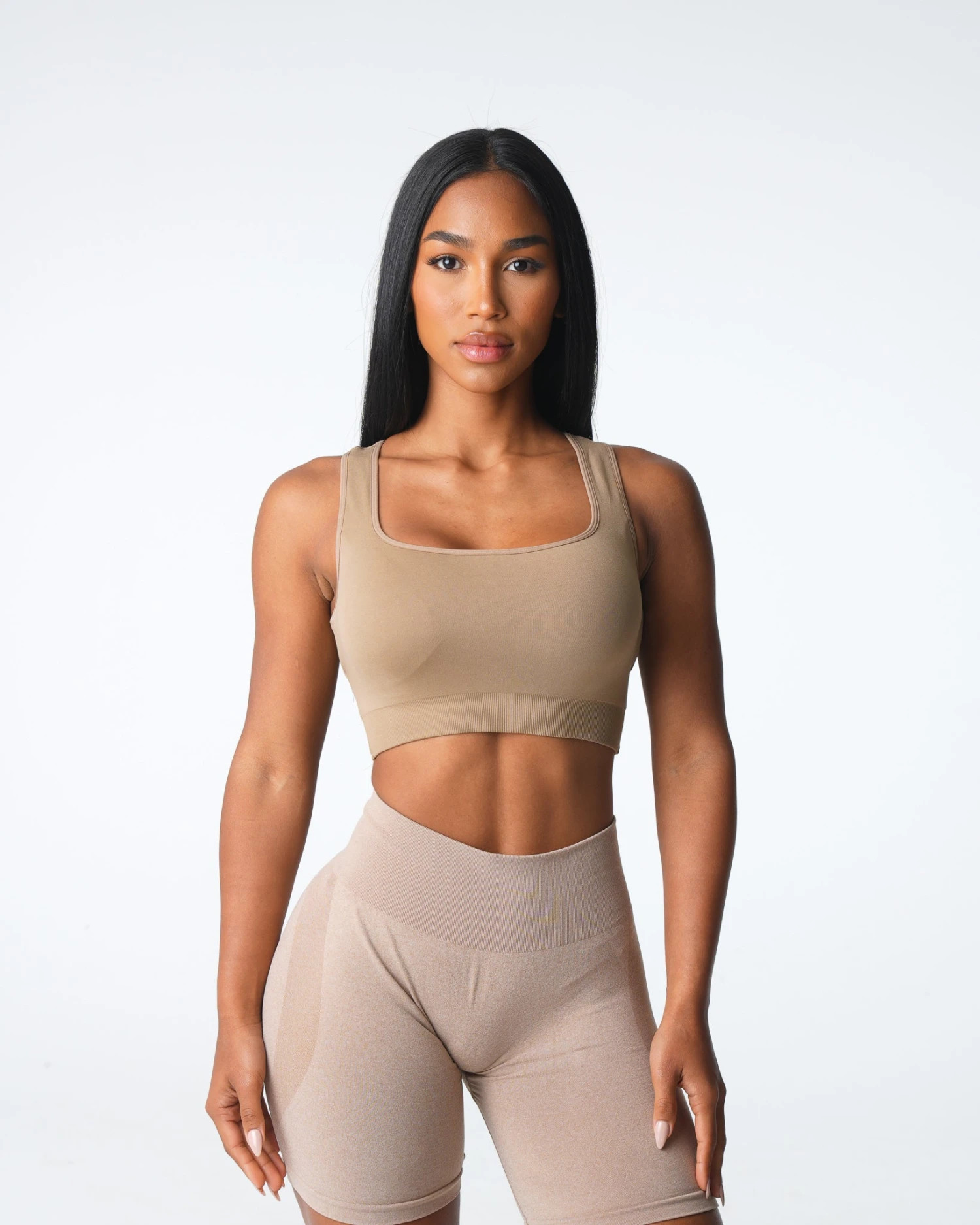 Empowered women, empower women. Grab your bestie and become goal getters together in the Empower Seamless Bra. Composed of our comfortable and stretchy seamless material and flaunting a scoop neck front and triangular cutout back, this bra will elevate anyone’s confidence.