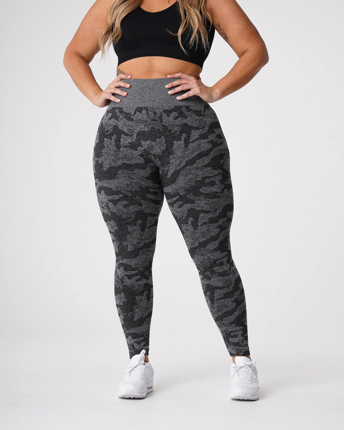 Why blend in when you can stand out in our Camo Seamless Leggings. Carefully crafted using the softest blend of materials to create a beautiful camo pattern, you’ll find yourself grabbing for these leggings every workout. Featuring a high waisted seamless design with slight compression in the waistband, these leggings were made to withstand your toughest workout. Pair these with any of our bras to complete the look.