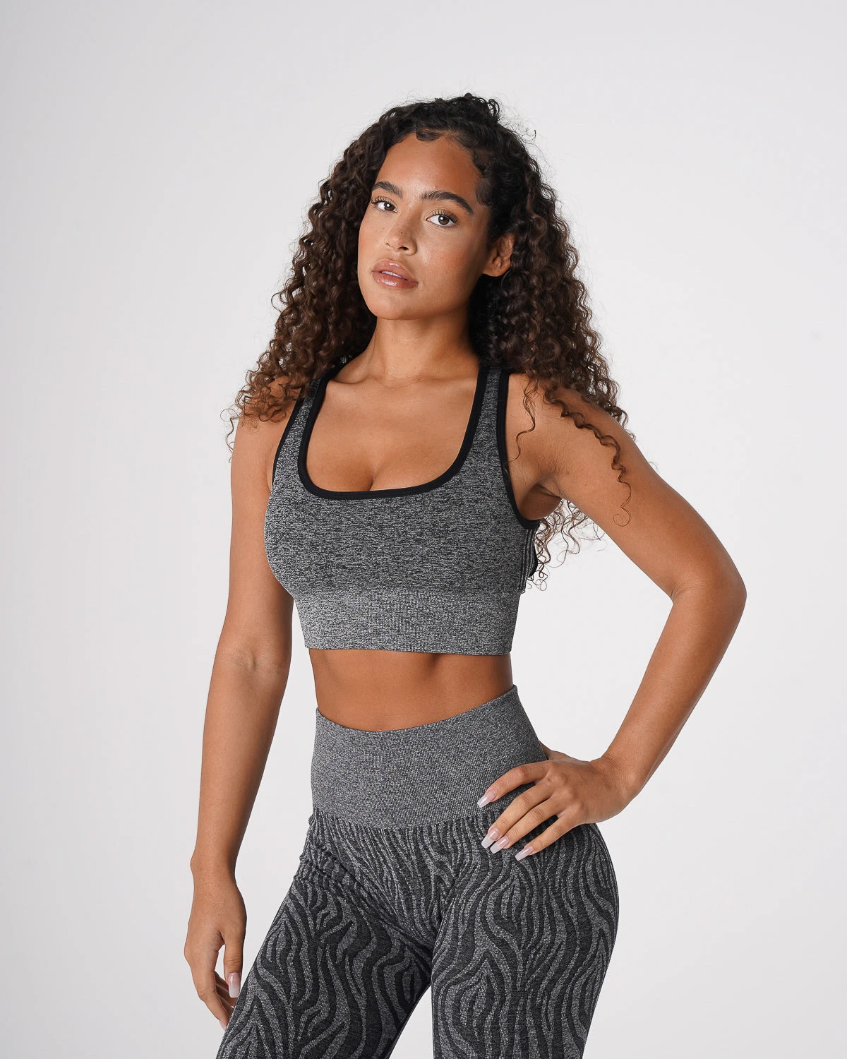 Expect peak performance with zero limitations in our Zebra Eclipse Seamless Bra. This blend of soft, seamless materials will provide maximum comfort and support throughout your toughest workouts. Featuring a compressive waistband, scooped neckline, and a figure-flattering open back design, this bra will become your next go-to in your gym wardrobe. Pair this with our Zebra Seamless Leggings for a feisty combo.