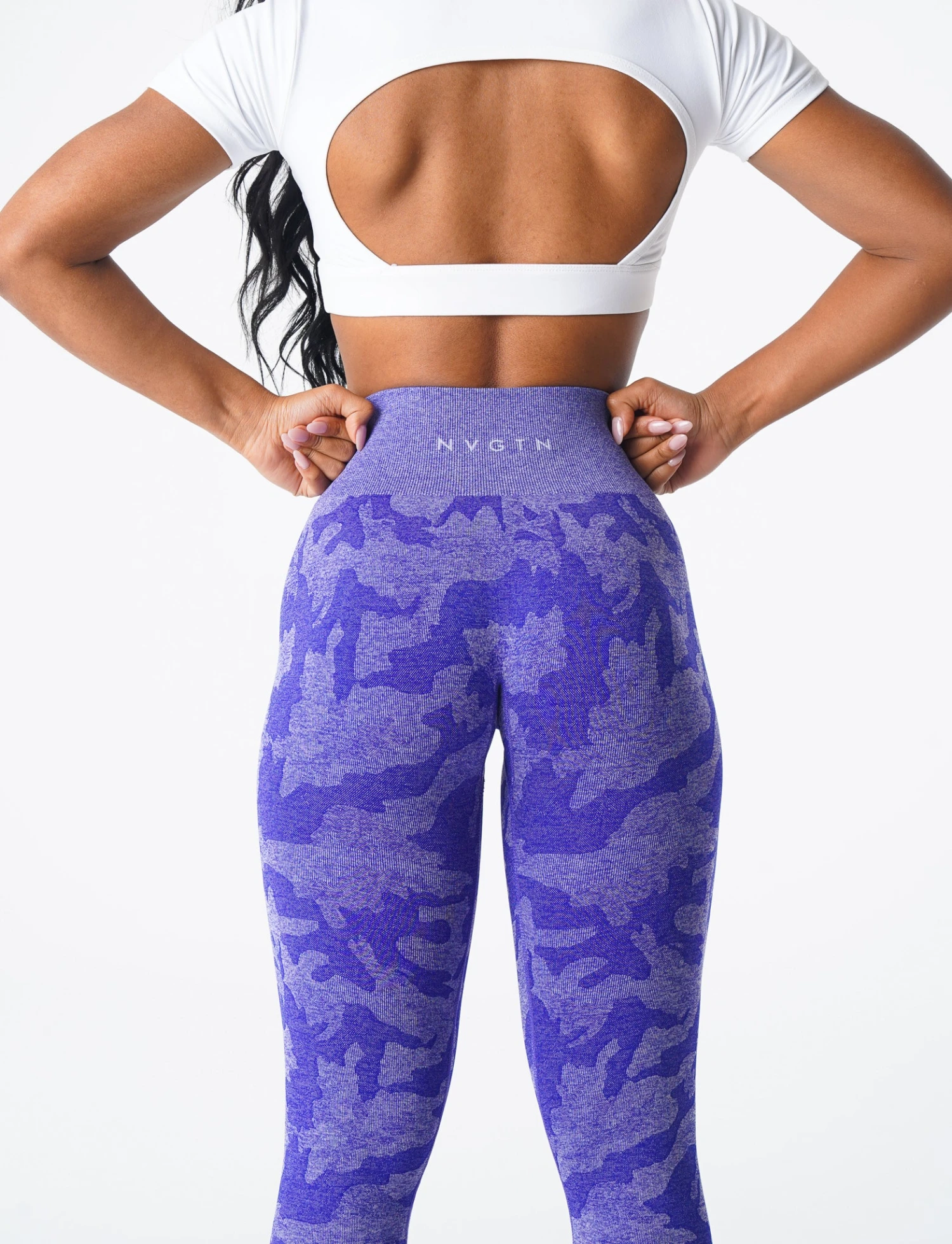 Why blend in when you can stand out in our Camo Seamless Leggings. Carefully crafted using the softest blend of materials to create a beautiful camo pattern, you’ll find yourself grabbing for these leggings every workout. Featuring a high waisted seamless design with slight compression in the waistband, these leggings were made to withstand your toughest workout. Pair these with any of our bras to complete the look.