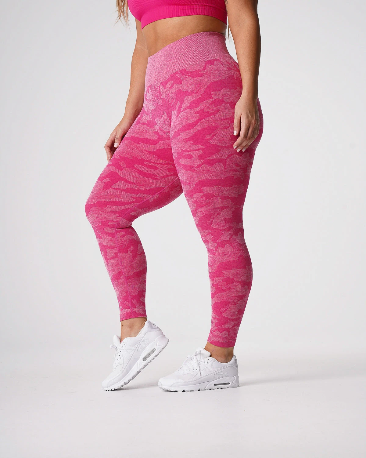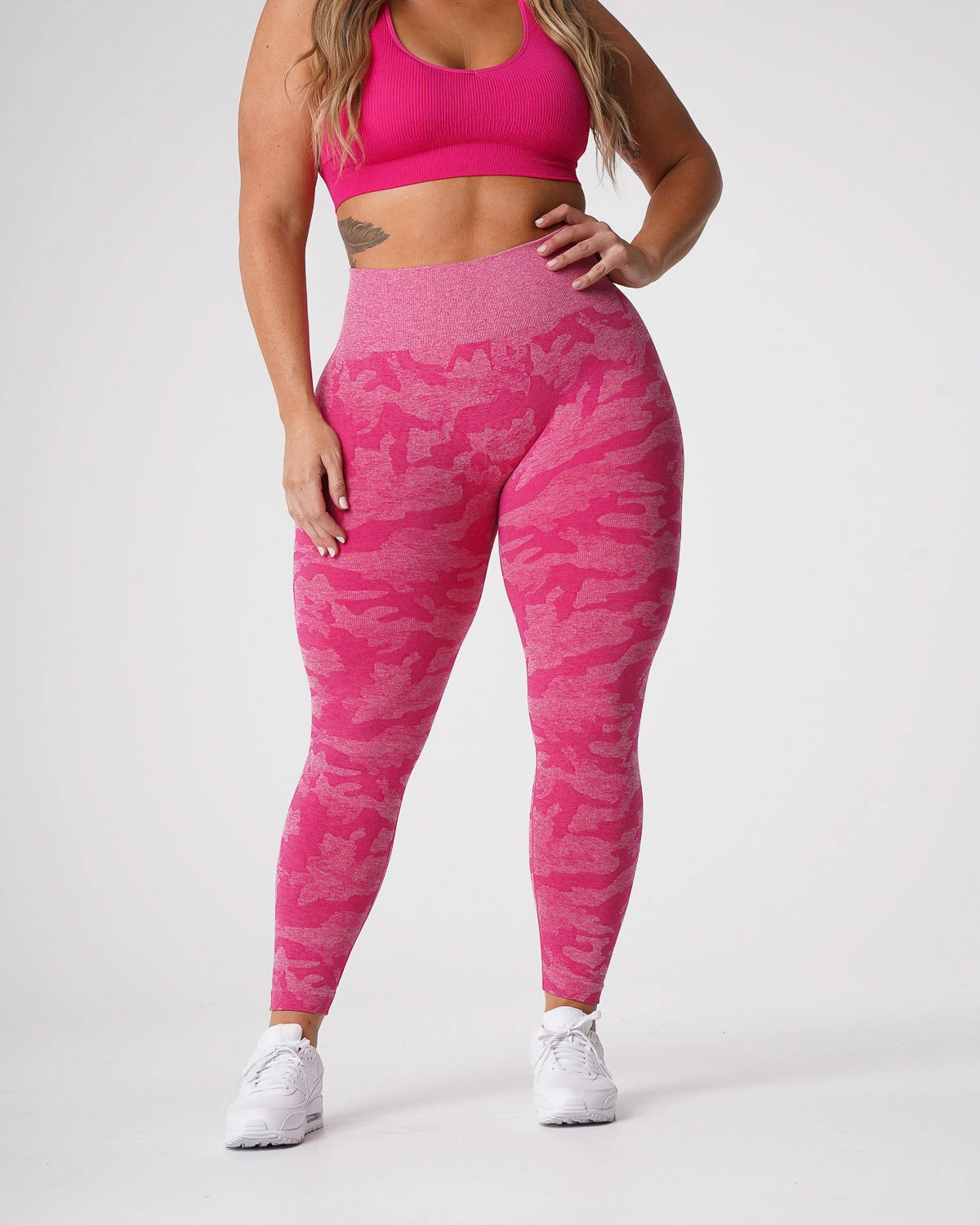 Why blend in when you can stand out in our Camo Seamless Leggings. Carefully crafted using the softest blend of materials to create a beautiful camo pattern, you’ll find yourself grabbing for these leggings every workout. Featuring a high waisted seamless design with slight compression in the waistband, these leggings were made to withstand your toughest workout. Pair these with any of our bras to complete the look.