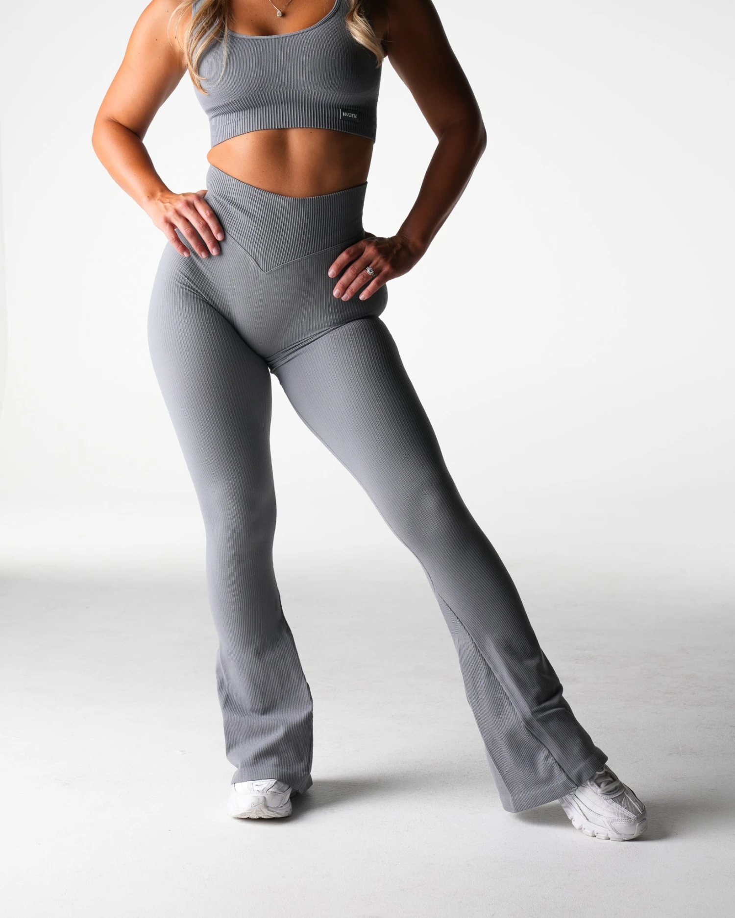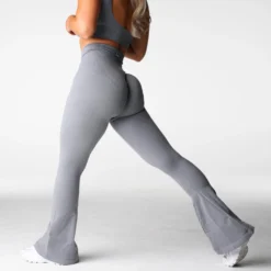 Grey Harmony Ribbed Seamless Flare Leggings
