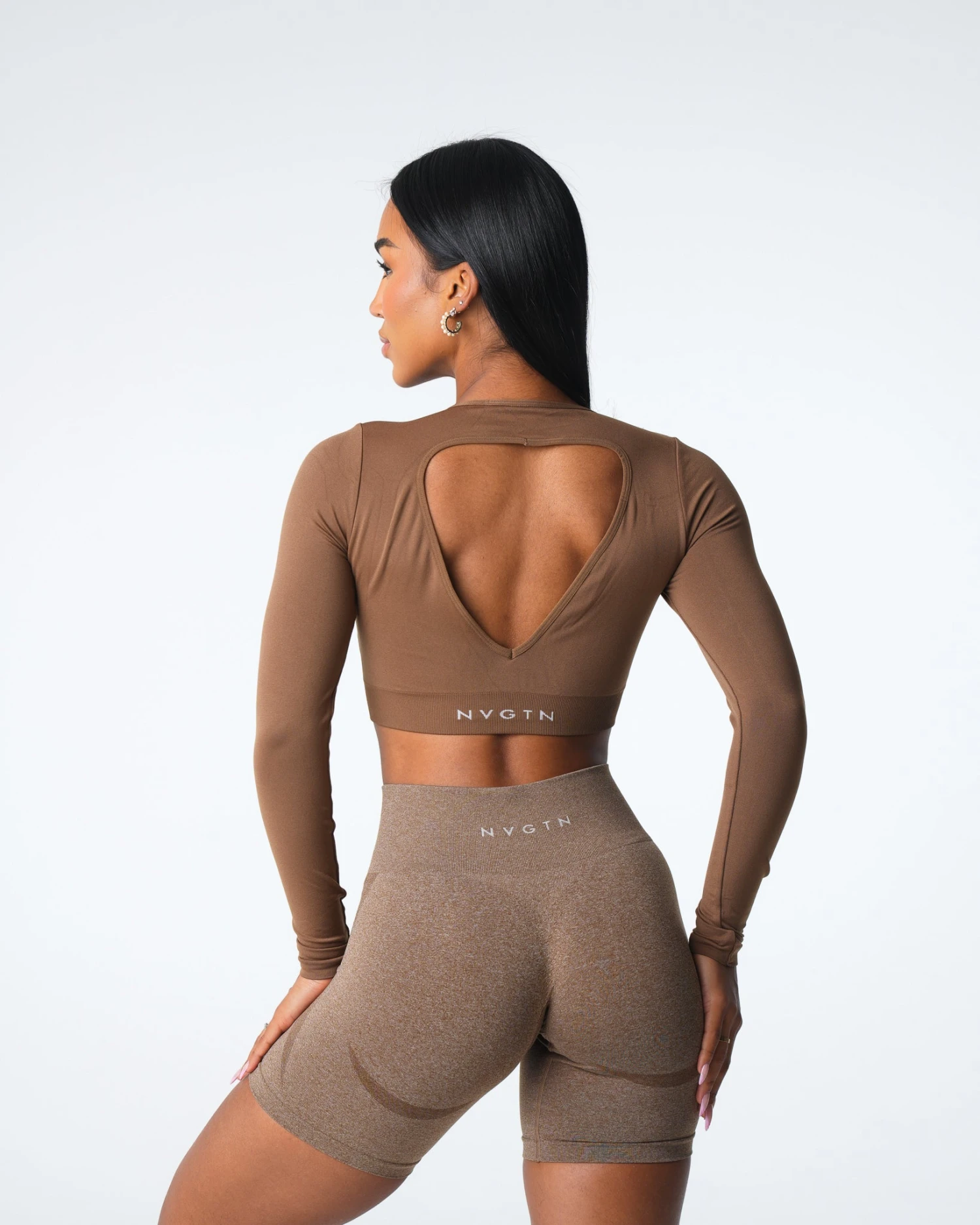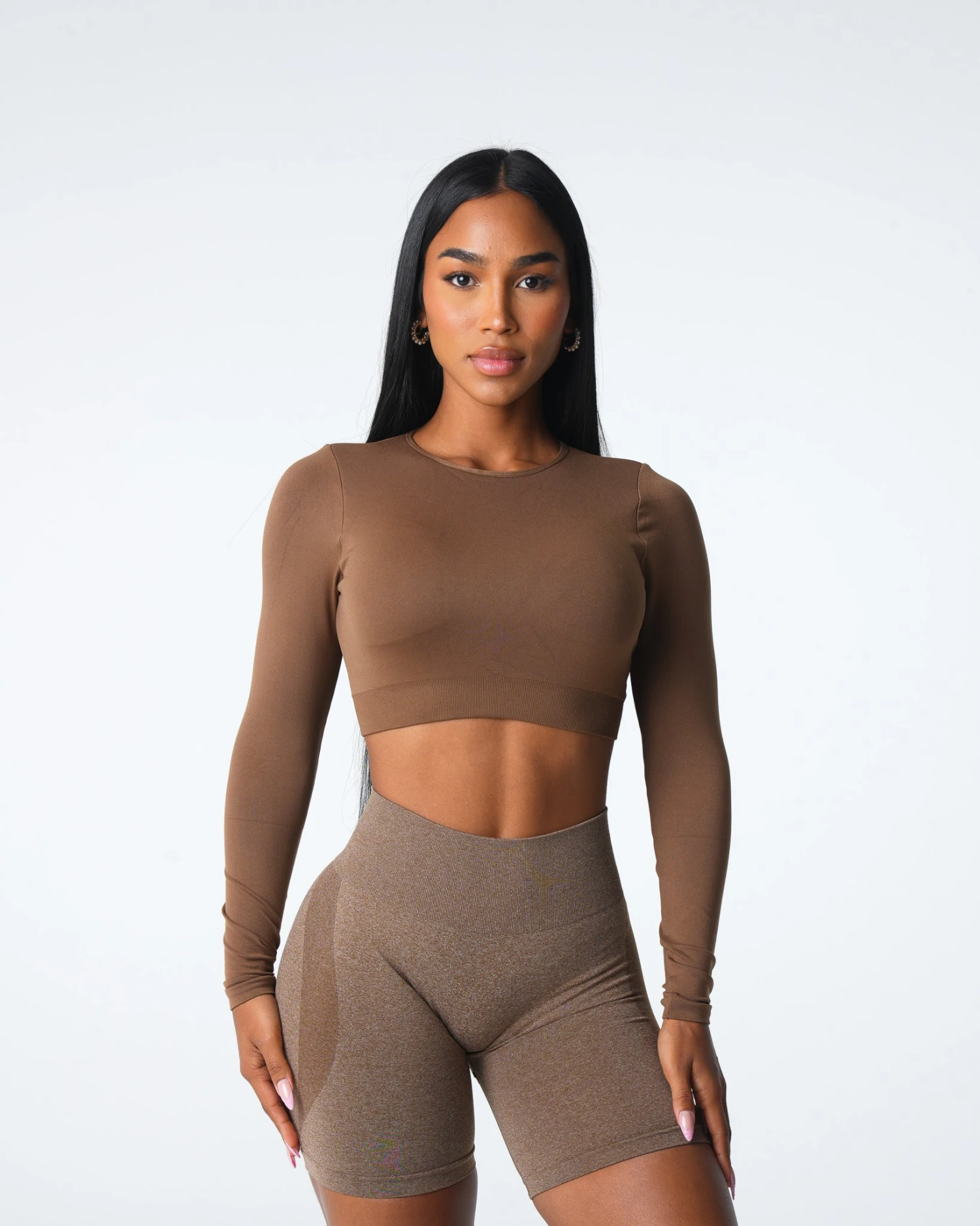 Trust the process and embrace the adventure in the Journey Long Sleeve Seamless Bra Top. This long sleeve bra top features built-in bra pads and a seamless construction, ensuring optimal support while maintaining a second-skin fit that moves effortlessly with you. The flattering cropped cut amplifies your confidence at the yoga studio, gym, or wherever your journey takes you.