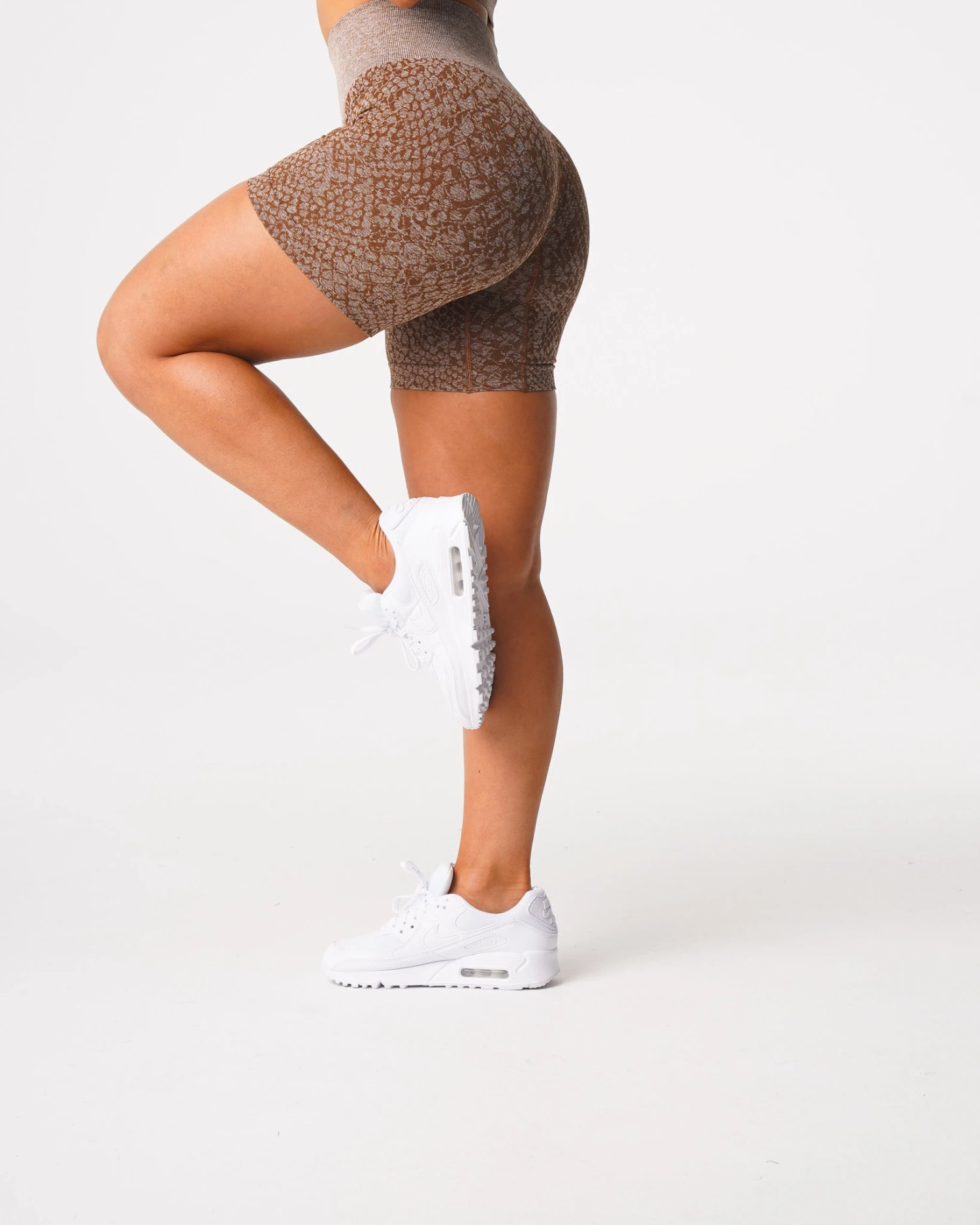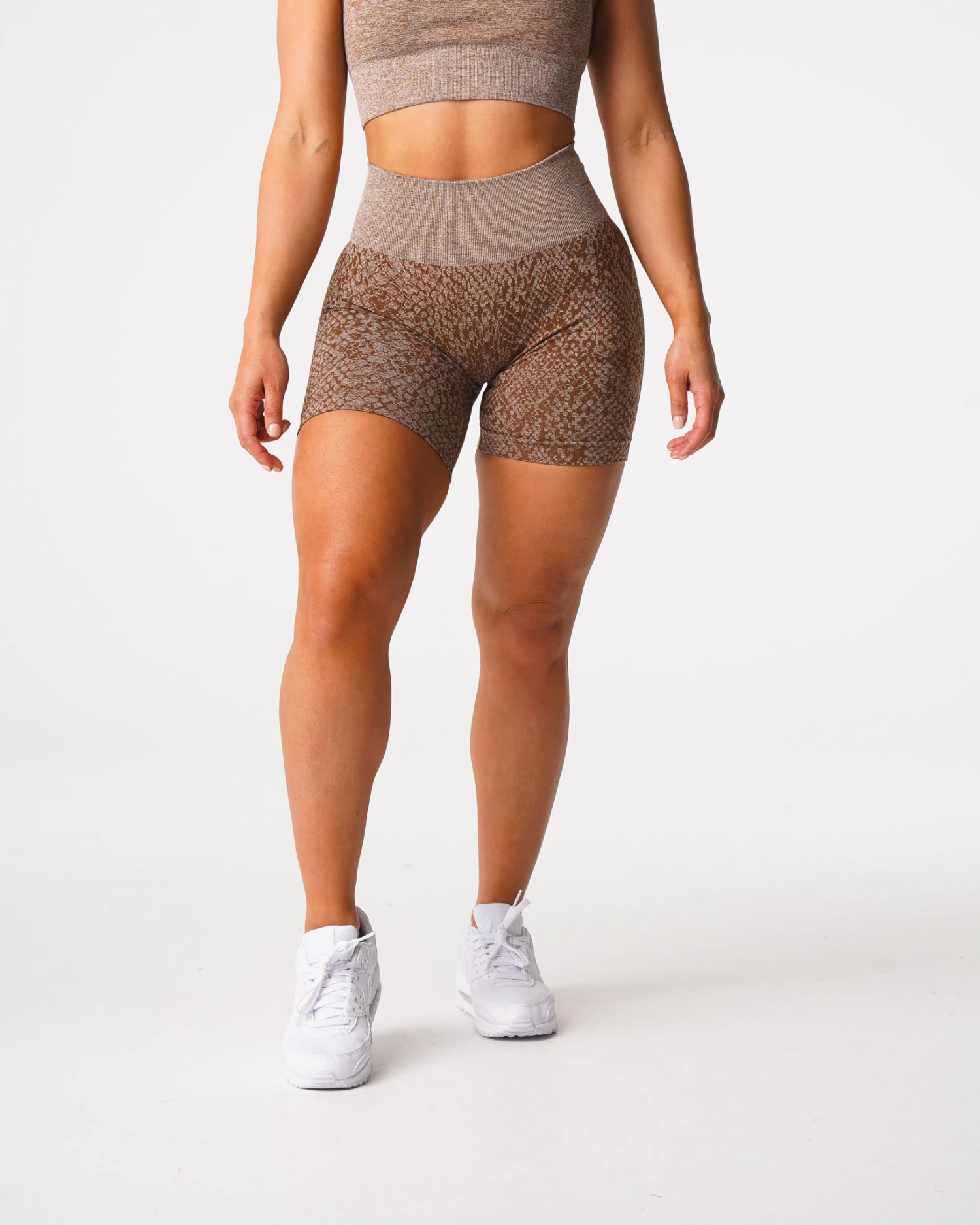 Out with the old and in with the bold in our Snakeskin Seamless Shorts. Carefully crafted using the softest blend of materials to create an eye-catching snake print pattern, you’ll find yourself grabbing for these shorts every workout. Featuring a high waisted seamless design with slight compression in the waistband, these shorts were made to withstand your toughest workout. Pair these with any of our bras to complete the look.