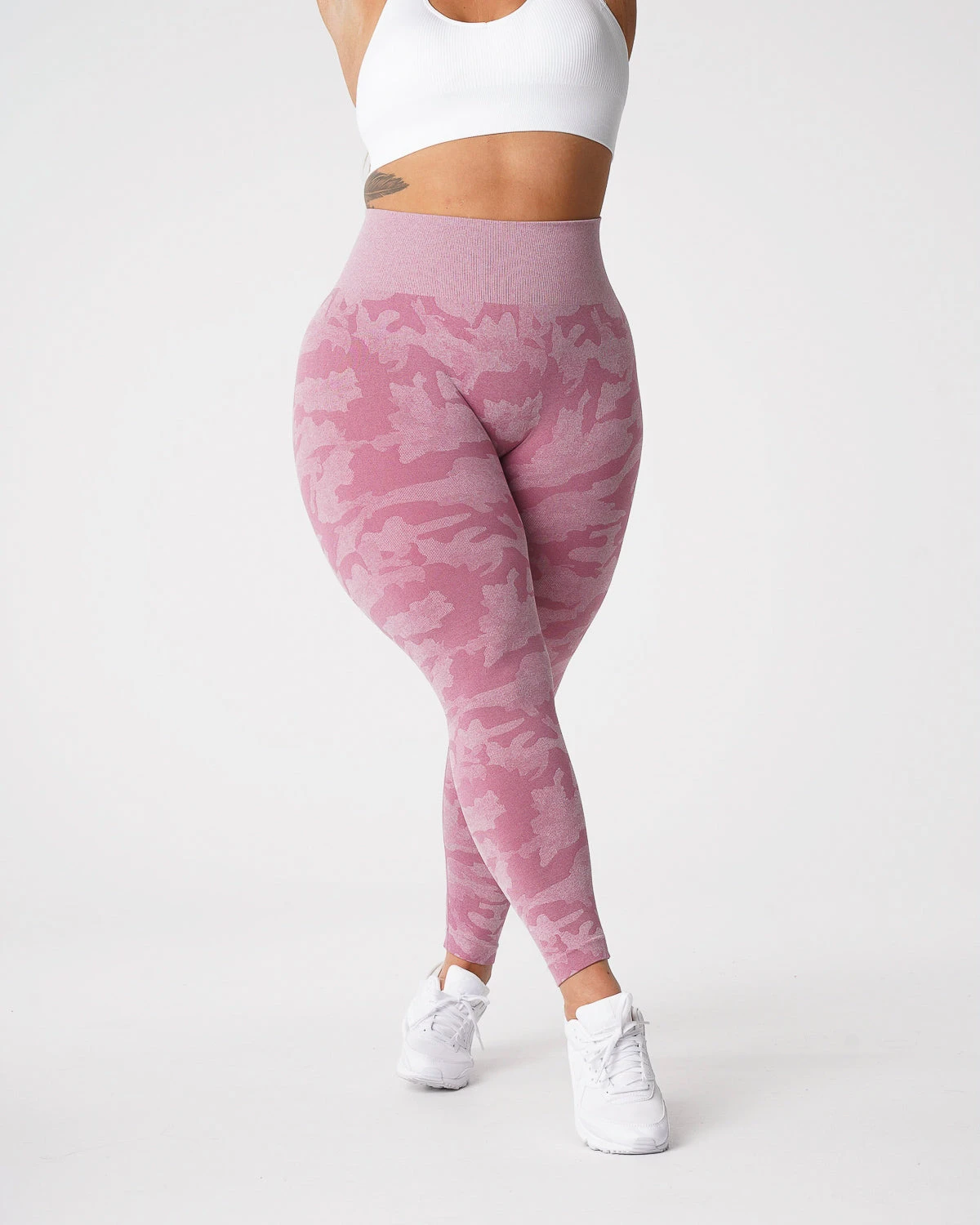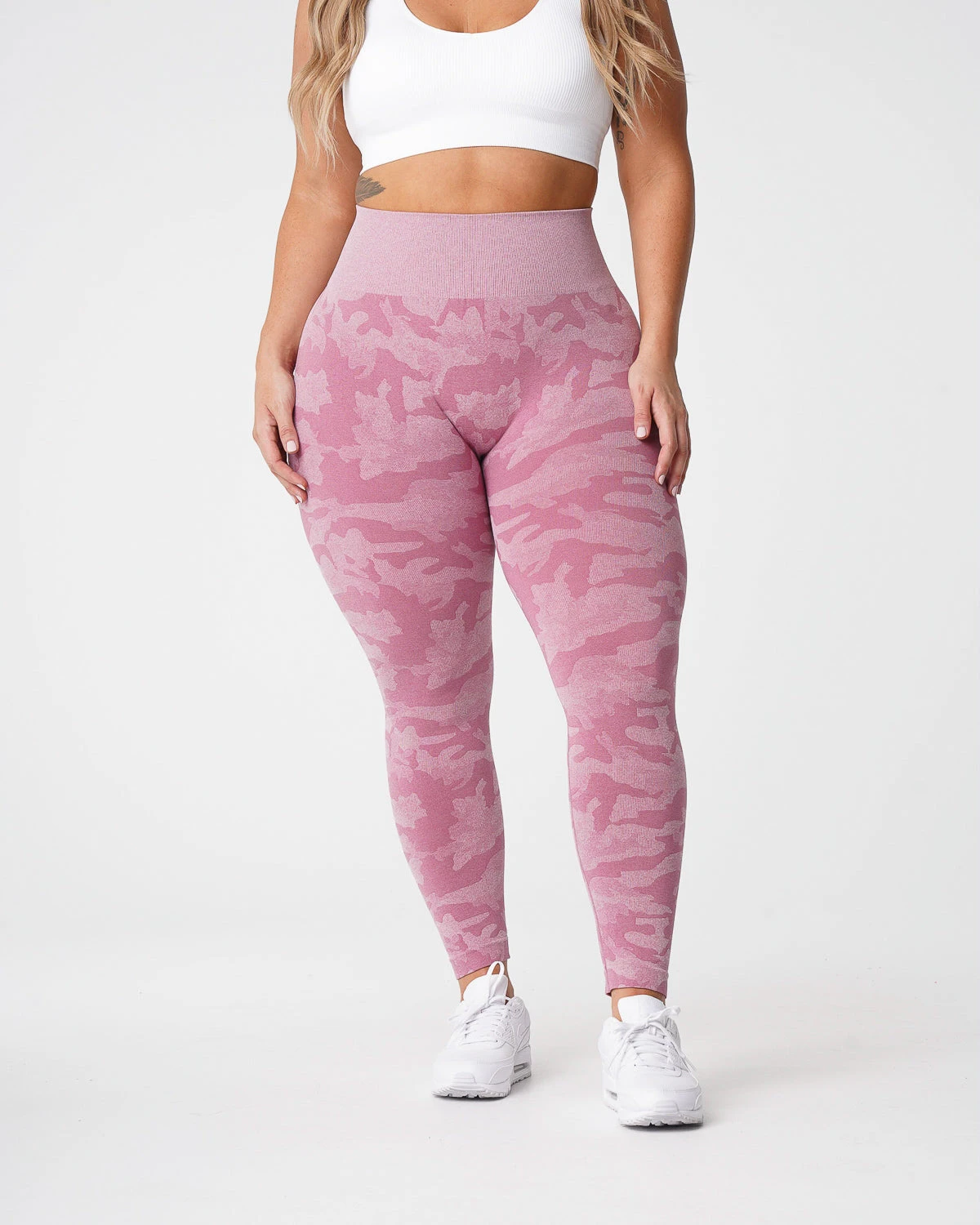 Why blend in when you can stand out in our Camo Seamless Leggings. Carefully crafted using the softest blend of materials to create a beautiful camo pattern, you’ll find yourself grabbing for these leggings every workout. Featuring a high waisted seamless design with slight compression in the waistband, these leggings were made to withstand your toughest workout. Pair these with any of our bras to complete the look.