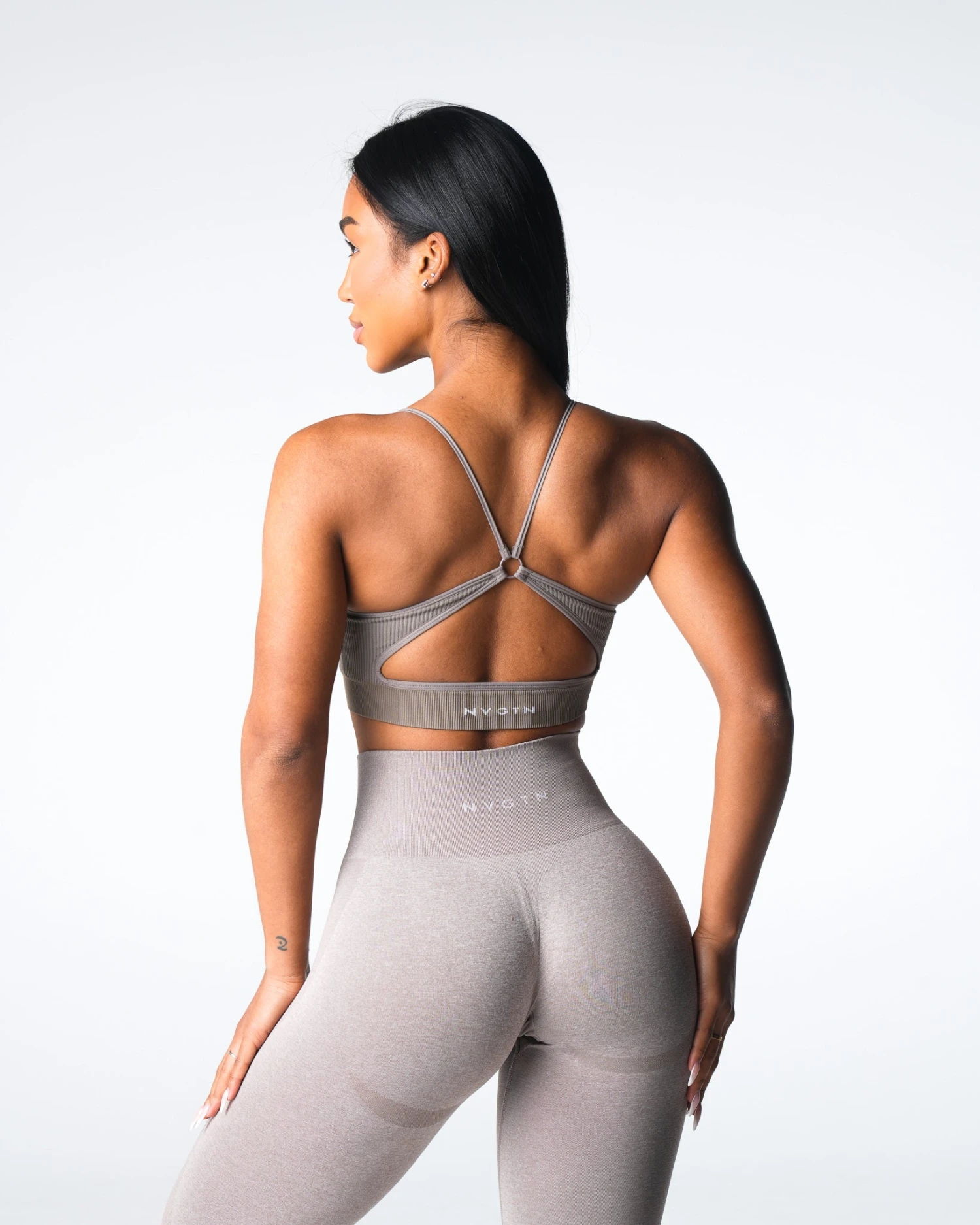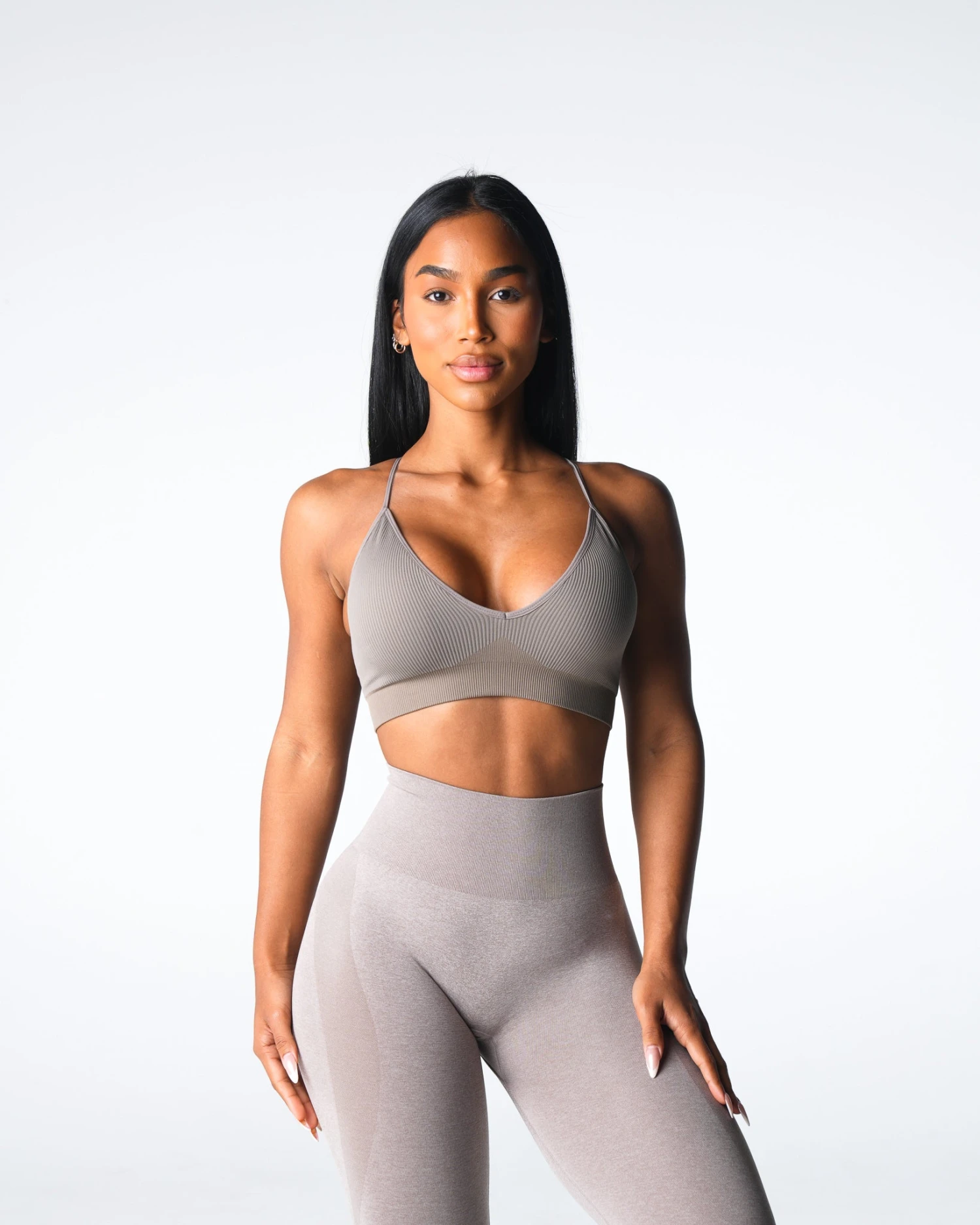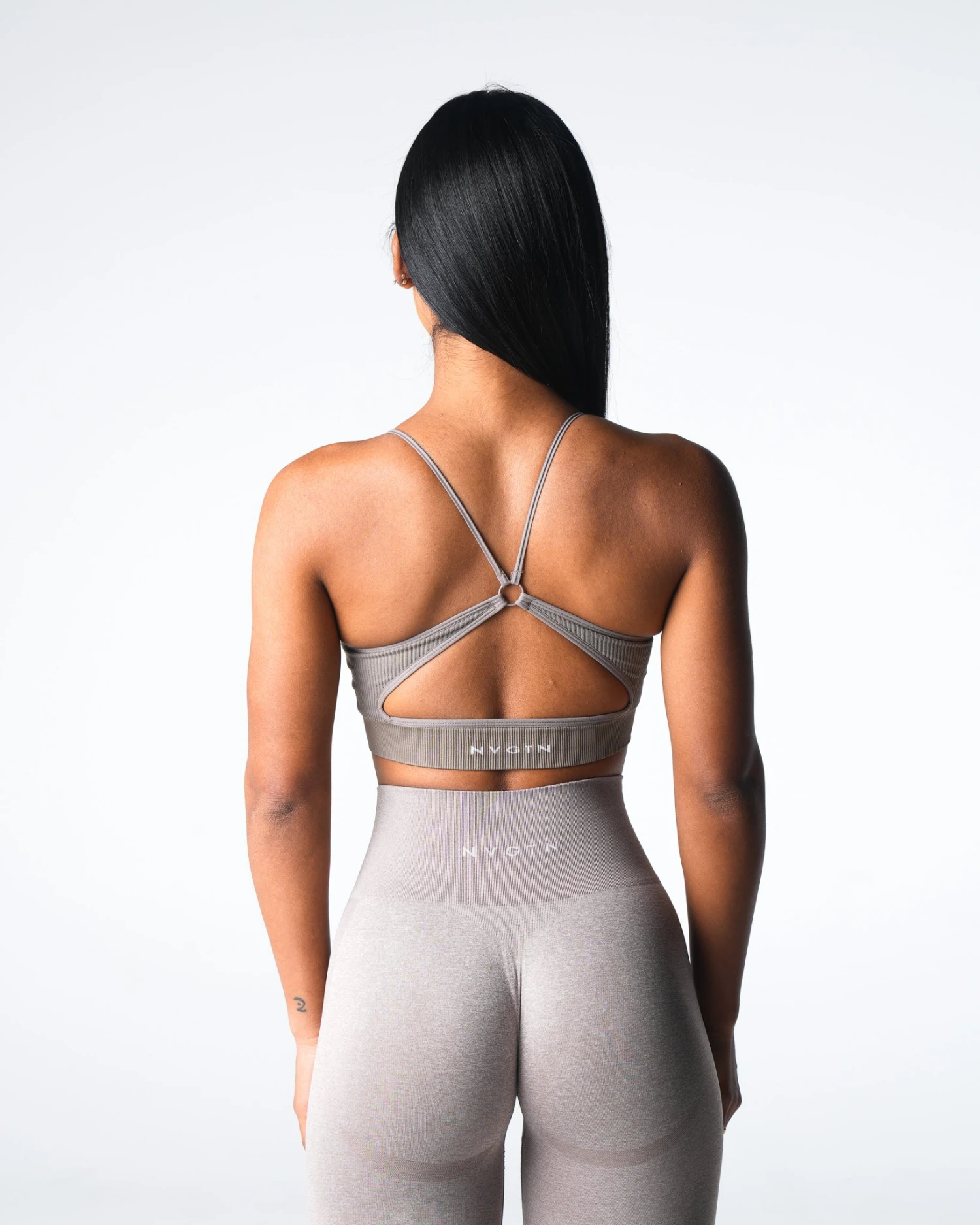 Take a sneak peek at the Glimpse Seamless Bra, a sweet and simple silhouette designed from our seamless material for unbeatable comfort and a second skin feel. The minimalist design features a low v cut neckline and narrow shoulder straps that come together in the back with a delicate accent ring.