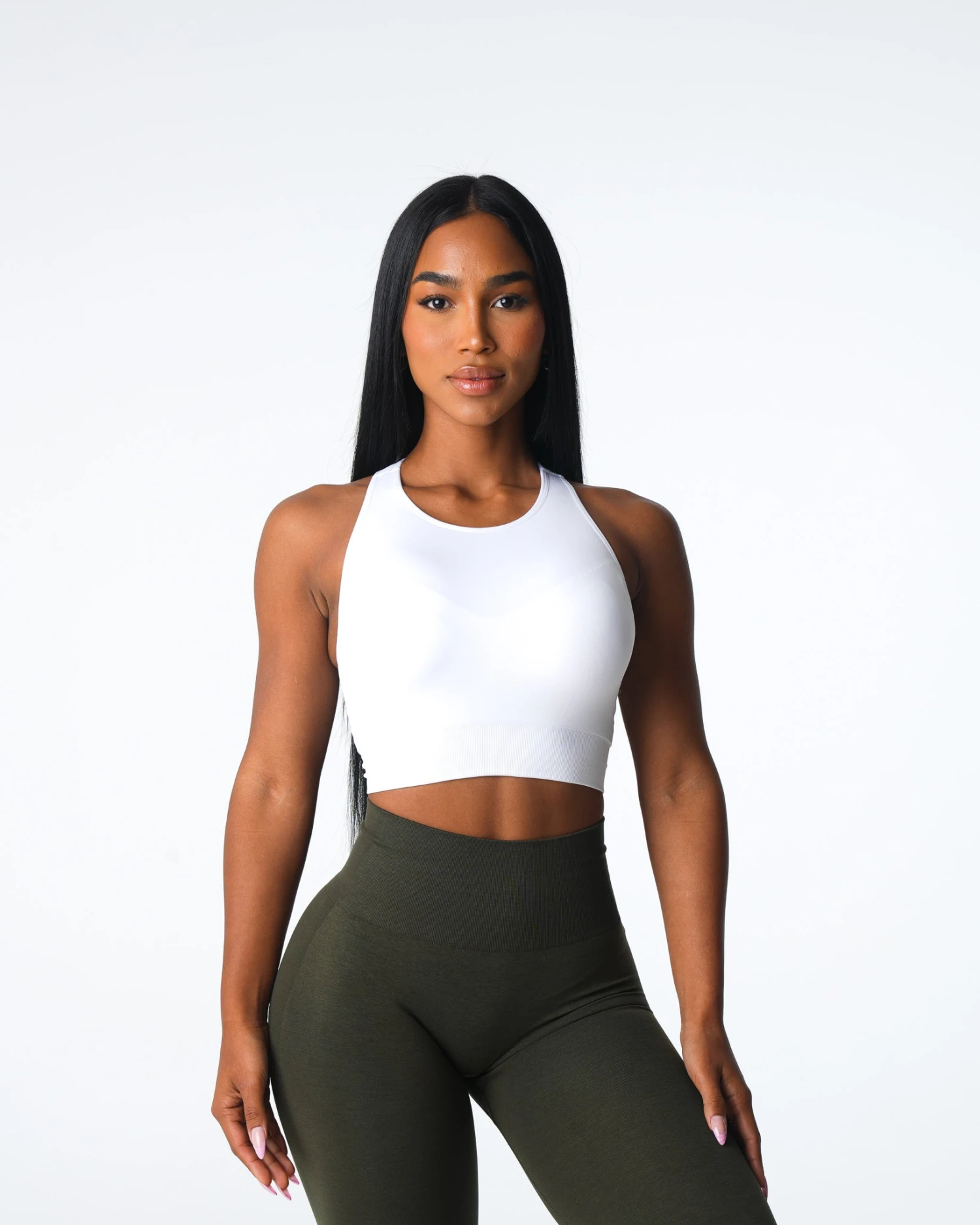 Vibe check: strong. Meet the Resilience Seamless Bra, crafted in our soft and smooth seamless material this bra features a flattering high neckline and supportive racerback design. However, your standard racerback just got a fierce new upgrade with exotic cut-out detailing on the back to add maximum breathability and drama.